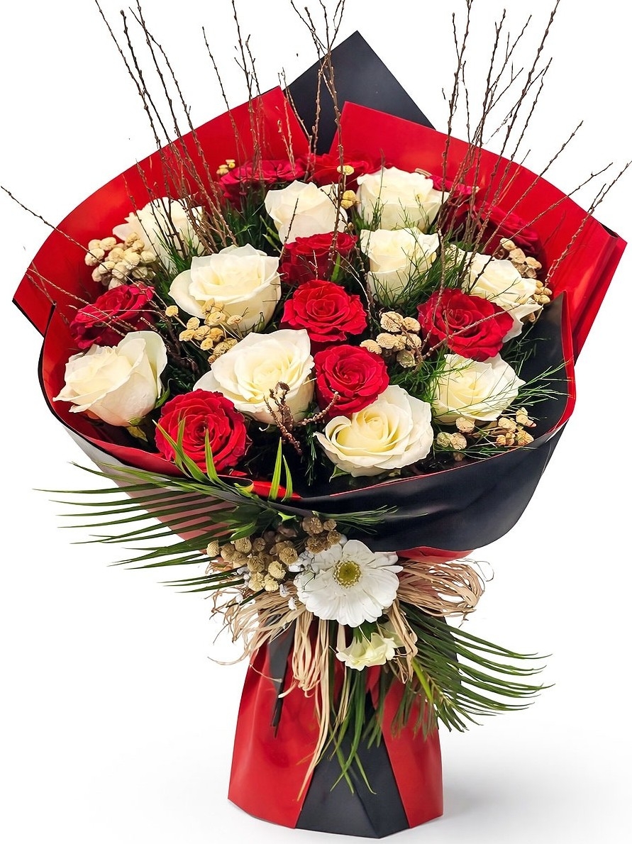Standartların ötesine geçmek için tasarlandı. Canlı kırmızı güllerin enerjisi, beyaz güllerin zarafeti ile bütünleşen bu buket. 11 adet kırmızı, 10 adet beyaz gülden oluşmaktadır. Göz dolduran bu buket, sevdiklerinize verdiğiniz değeri, göstermenin en ihtişamlı yolu.
